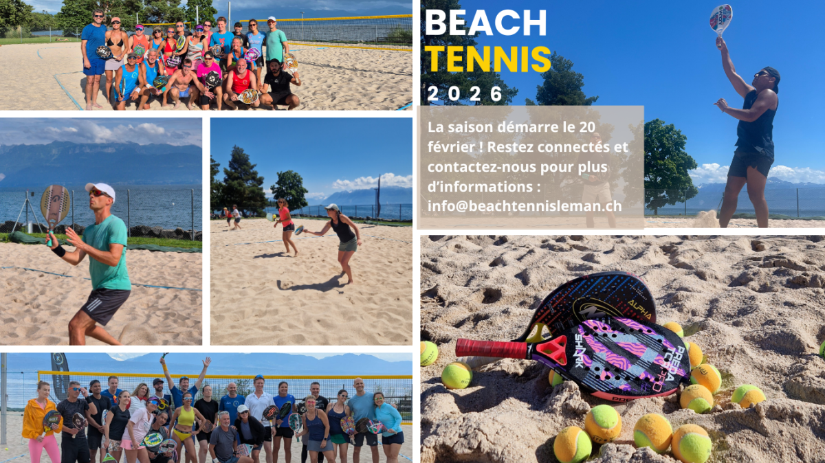 Découvrez l'Expérience Ultime du Beach Tennis au Bord du Léman ! 🌊🏖️🏓 Envie d’un sport de raquette fun, social et dynamique dans un cadre exceptionnel au bord du lac ? Bienvenue à Beach Tennis Léman, où chaque match ressemble à une escapade ensoleillée ! Que vous soyez débutant ou joueur confirmé, nos terrains de sable, nos coachs expérimentés et notre communauté passionnée vous permettront de jouer en toute simplicité.